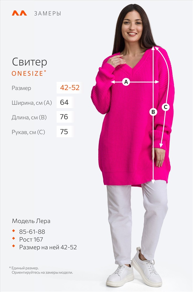 Размер 42-52: длина:76 см; ширина:64 см; длина рукава внешняя:75 см; длина рукава внутренняя:49 см.