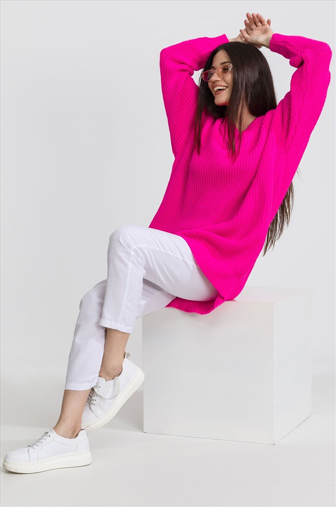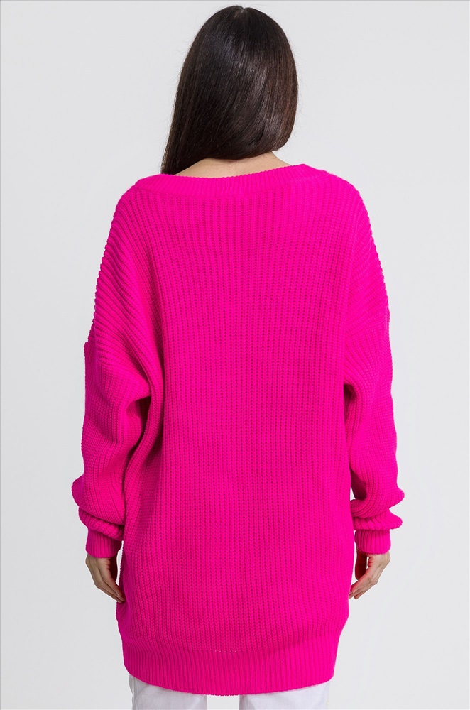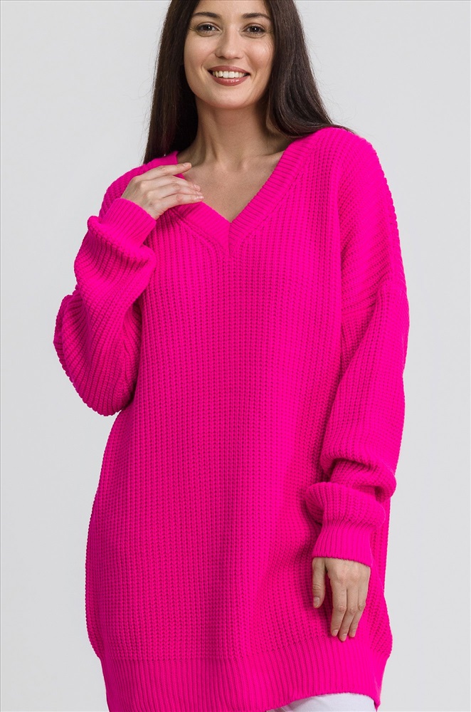 Женский удлиненный джемпер оверсайз с V-образным вырезом аккуратно открывает шею, подчеркивая изящность своей обладательницы. Благодаря свободному крою и минималистичному дизайну ярко-розовый свитер oversize надолго сохранит свою актуальность. Мягкая, приятная к телу смесовая пряжа из хлопка и шерсти прекрасно согревает в прохладное время года, а благодаря акрилу в составе свитер onesize не растягивается и сохраняет форму долгое время. Длинный базовый свитер с V-вырезом впишется в повседневные образы. Объемный розовый джемпер идеален для уютных вечеров дома или встреч с друзьями. Однотонный пуловер для женщин отлично подходит для лаконичных образов.