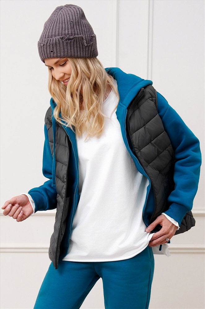 Встречай эту осень стильно! Женская утеплённая жилетка на молнии от Happyfox — это тот самый штрих, который добавит твоему образу лёгкости и уверенности. Темно-серая стёганая безрукавка подчёркивает силуэт, выглядит актуально и при этом дарит ощущение тепла и уюта.