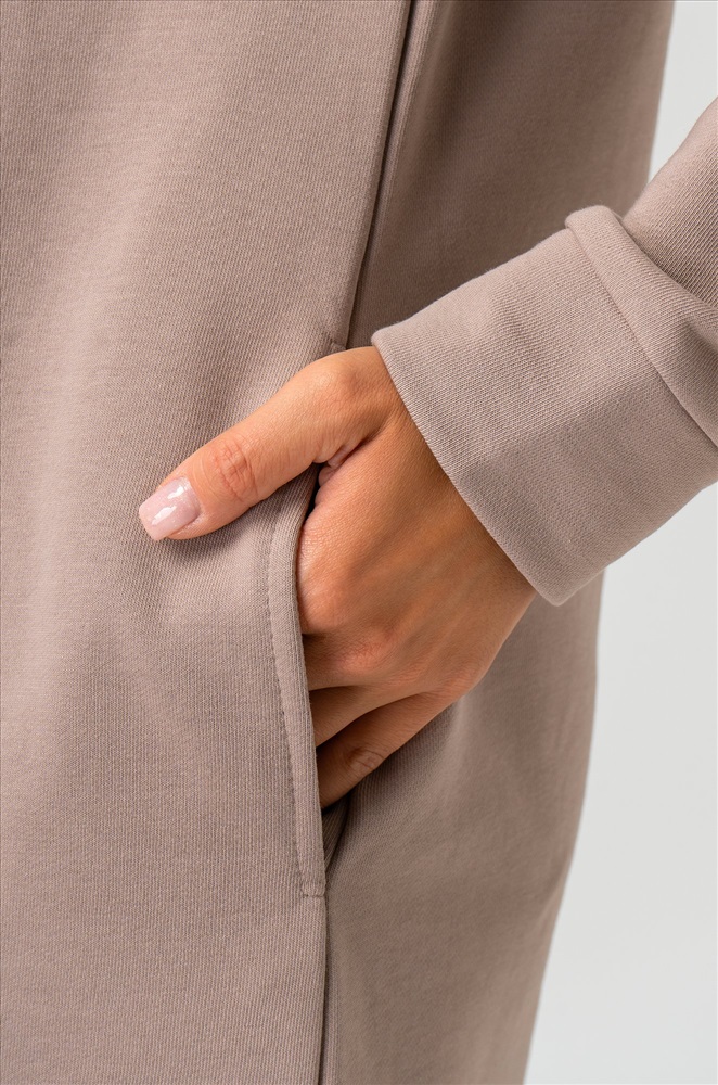 Спортивное женское платье с длинными рукавами — идеальный выбор для тех, кто ценит комфорт. Воротник внахлест придает этому платью особый уют и стильный акцент. Для удобства по бокам предусмотрены карманы. Коричневое платье-толстовка выполнено из футера трехнитки — натуральный хлопок в составе дарит мягкость и комфорт, а добавление полиэстера сохраняет форму и делает трикотажное платье устойчивым к износу. Прямой крой и длина мини создают непринужденный силуэт, позволяя двигаться свободно. Ворот и длинные рукава подчеркивают спортивный стиль, а коричневый цвет делает однотонное платье универсальным. Оно подойдет для прохладных осенних и зимних дней. Хлопковое платье с горлом станет отличным выбором для женщин, ценящих комфорт и непринужденный стиль. Платье — идеальный вариант для осени и зимы. Короткое платье из трикотажа превращает каждое мгновение в комфортное наслаждение и подходит для повседневных прогулок, отдыха дома или встреч с друзьями. Модель Анфиса, ее рост 170, параметры: 88-67-97. На ней размер 44.