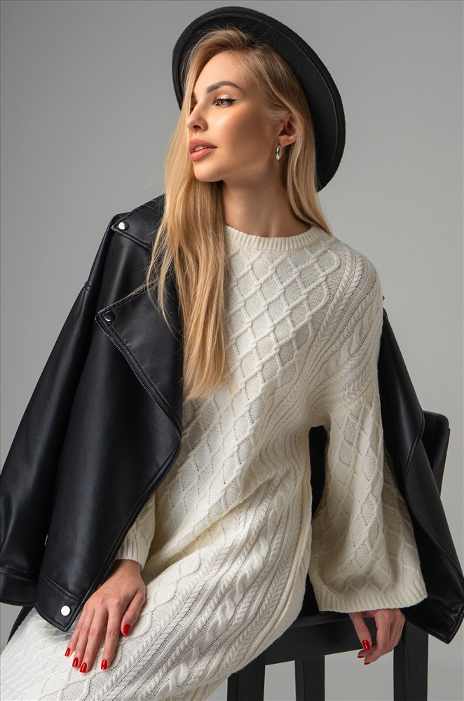 Теплое платье – как чашка горячего шоколада в холодный снежный день! Погружайтесь в уют с красивым белым женским платьем.