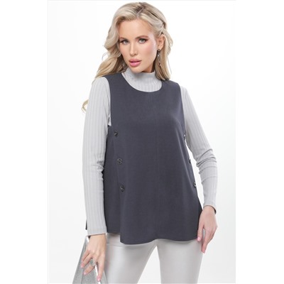 Декоративные элементы: Пуговицы Вид застёжки: Без застежки Вырез горловины: Округлый Длина изделия по спинке: 59 Назначение: Повседневная Тип рукава: Без рукавов Уход за вещами: Бережная стирка при 30 градусах Фактура материала: Трикотажный Состав: 98% полиэстер, 2% эластан Тип ткани: креп - трикотаж Цвет: Антрацитовый Трикотажный жилет с декоративными пуговицами — стильная находка, которая идеально впишется как в повседневный, так и в деловой образ. Изящный округлый воротник, однотонная расцветка и свободный крой делают модель универсальной. Декоративные пуговицы создают дополнительные вертикали, которые зрительно вытягивают силуэт и стройнят. А главное: с помощью жилетки можно составить модный многослойный образ, преобразить фигуру и быть уверенной, что нюансы в области талии надежно скрыты. Носить трикотажное изделие можно поверх водолазки, лонгслива, рубашки или блузы, чтобы эффектно завершить наряд. А чтобы безрукавка радовала вас как можно дольше, рекомендуем стирать ее в бережном режиме при температуре до 30 градусов. Длина: 44 размер - 59 см 46 размер - 59 см 48 размер - 60 см 50 размер - 60 см 52 размер - 61 см 54 размер - 61 см 56 размер - 62 см Бережная стирка при 30 градусах Цвет изделия на фотографии может отличаться от фактического товара, что связано с искажением цветопередачи монитором, настройками фотоаппаратуры и прочими факторами Комментарии к товару
