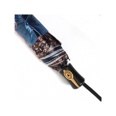 Зонт женский ТриСлона-882/L 3882 D, R=55см, полуавт; 8спиц, 3слож, сатин, синий/коричн (узор) 235300