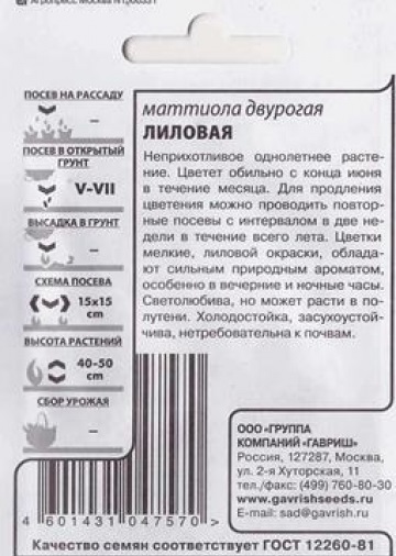 Маттиола  двурогая Лиловая ч/б (Код: 82260)