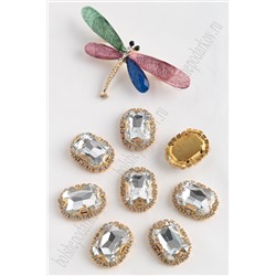 Стразы пришивные в золотой оправе 18*24 мм "Прямоугольник" (5 шт) SF-2050/1, серебро №1