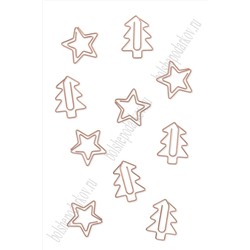 Скрепки декоративные "Елочка и звездочка" 3 см (10 шт) SF-7837, розовое золото