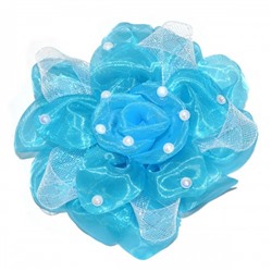 Бант детский, школьный, на резинке (голубой) -03