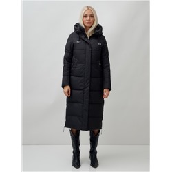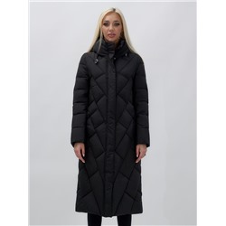 Пальто утепленное стеганное зимнее с капюшоном женское черного цвета 982Ch