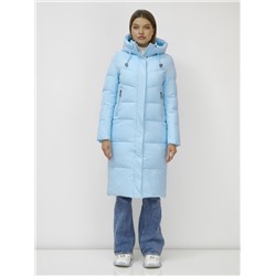 Пальто утепленное стеганное зимнее с капюшоном женское голубого цвета 9636_1Gl