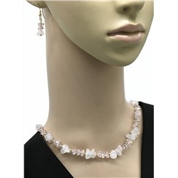Бусы и серьги галтовка из розового кварца с цирконом, 44см, 4см